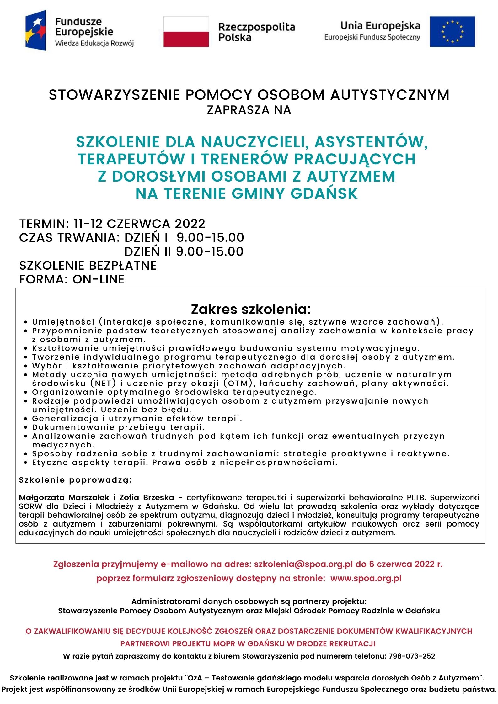 W ramach Konkursu 1/2021 pn. „Sięgamy po sukces” kierunek pomocy 2: zwiększenie samodzielności osób niepełnosprawnych Stowarzyszenie Pomocy Osobom Autystycznym otrzymało wsparcie na działalność rehabilitacyjną, która ukierunkowana jest na osoby ze spektrum autyzmu w dwóch projektach na łączną kwotę dofinansowania ze środków Państwowego Funduszu Rehabilitacji Osób Niepełnosprawnych w wysokości 3 708 438,43 zł. Przewodnicząca Stowarzyszenie Pomocy Osobom Autystycznym pani Małgorzata Rybicka oraz sekretarz Stowarzyszenia pan Kacper Ptaszek podpisali w siedzibie Państwowego Funduszu Rehabilitacji Osób Niepełnosprawnych w Gdańsku 12 maja 2022 r. umowy z PFRON na ich realizację.