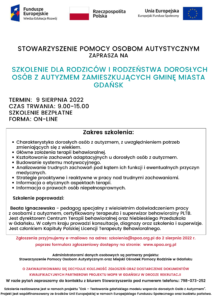 SZKOLENIA DLA RODZICÓW I RODZEŃSTWA DOROSŁYCH OSÓB Z AUTYZMEM MIESZKAŃCÓW GMINY MIASTA GDAŃSK 9 SIERPNIA 2022r.