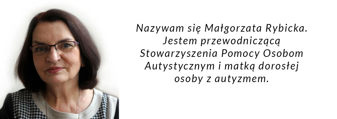 Małgorzata Rybicka – od 1991 roku przewodnicząca SPOA, mama Antoniego, dorosłej osoby z autyzmem, pedagog specjalny, filolog polski. W latach 1993-2018 była dyrektorką Specjalnego Ośrodka Rewalidacyjno-Wychowawczego dla Dzieci i Młodzieży z Autyzmem, uczestniczka zespołów ekspertów oraz ciał doradczo-opiniujących, w tym Wojewódzkiej Rady ds. Osób Niepełnosprawnych w Gdańsku.